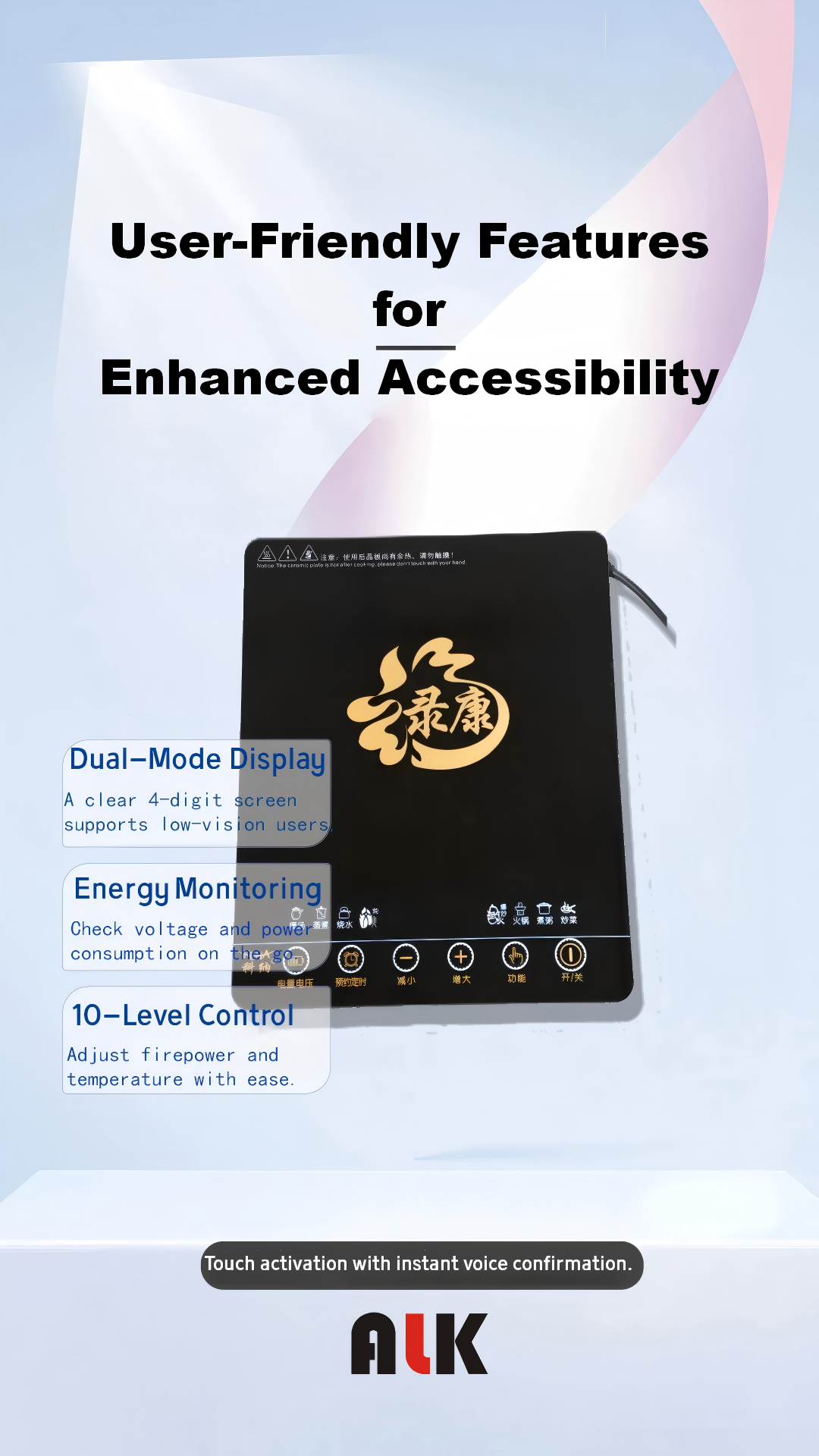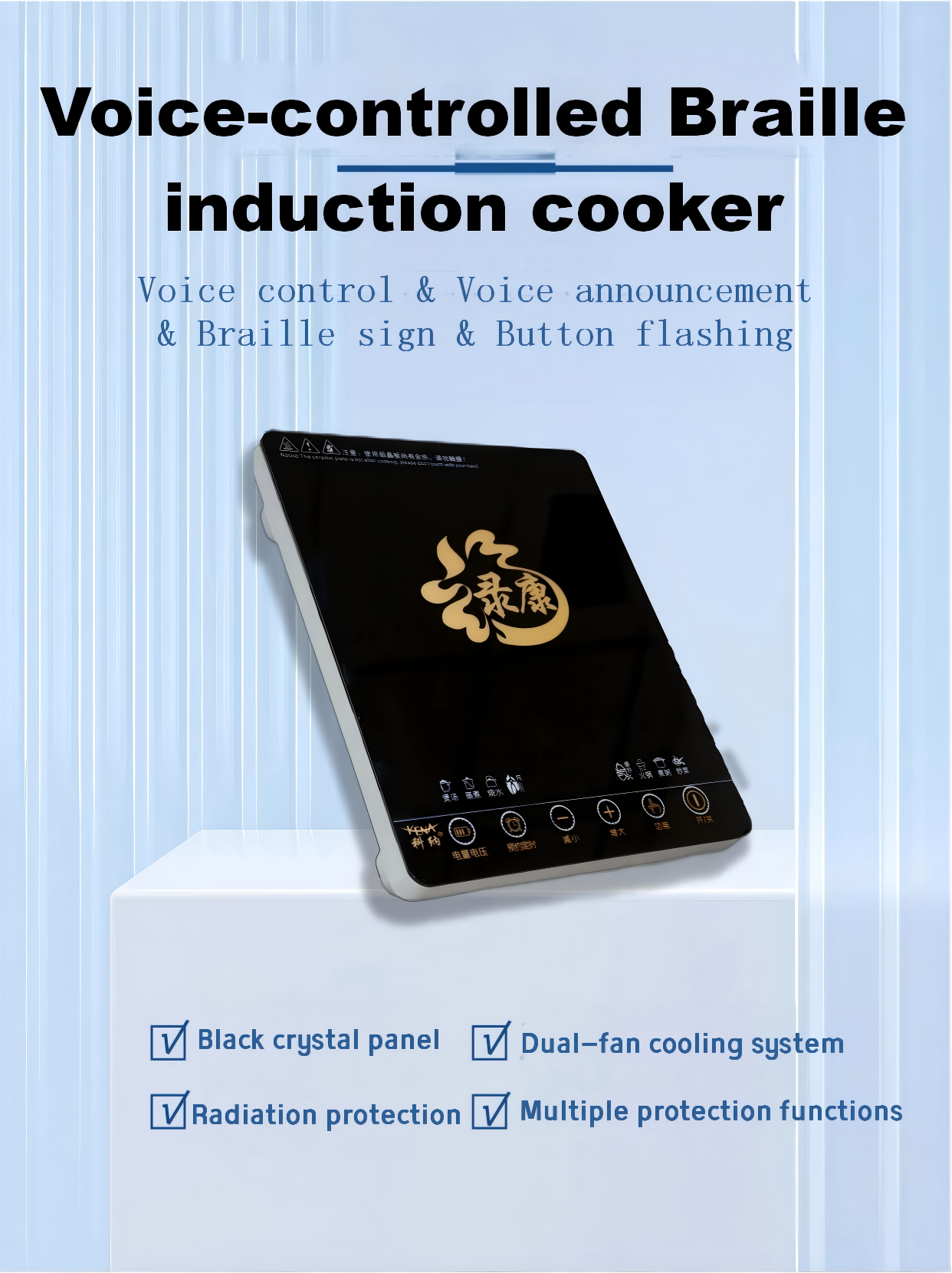 1. Function with Braille signage, voice prompt, voice control, convenient for blind operation, can make appointments for timing, increase, decrease, with the function of soup, steaming、boiling water boiling soup hot pot cooking porridge and stir-frying.